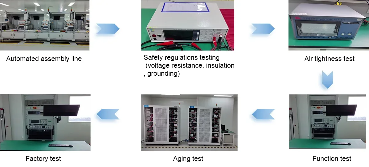 उत्पाद ने अंतर्राष्ट्रीय सुरक्षा और विद्युत चुम्बकीय अनुकूलता मानकों का अनुपालन करते हुए CCC, CE, UL, FCC और EN50498 प्रमाणपत्र पारित कर दिए हैं। हमारे कारखाने में पूर्ण गुणवत्ता नियंत्रण प्रणाली है, कच्चे माल के निरीक्षण से लेकर तैयार उत्पाद परीक्षण तक, प्रत्येक प्रक्रिया की कड़ाई से निगरानी की जाती है। पेशेवर IP67 वॉटरप्रूफ और डस्टप्रूफ परीक्षण उपकरण का उपयोग कठोर वातावरण का अनुकरण करने के लिए किया जाता है, यह सुनिश्चित करते हुए कि प्रत्येक उत्पाद सुरक्षा मानक को पूरा करता है। हम ग्राहकों के संदर्भ के लिए फैक्टरी उत्पादन लाइन और गुणवत्ता निरीक्षण तस्वीरें प्रदान करते हैं।