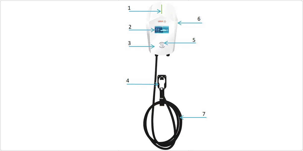 4. चार्जिंग गन: जीबी/टी 20234.2 मानक, 5 मीटर लंबी चार्जिंग केबल से जुड़ा;